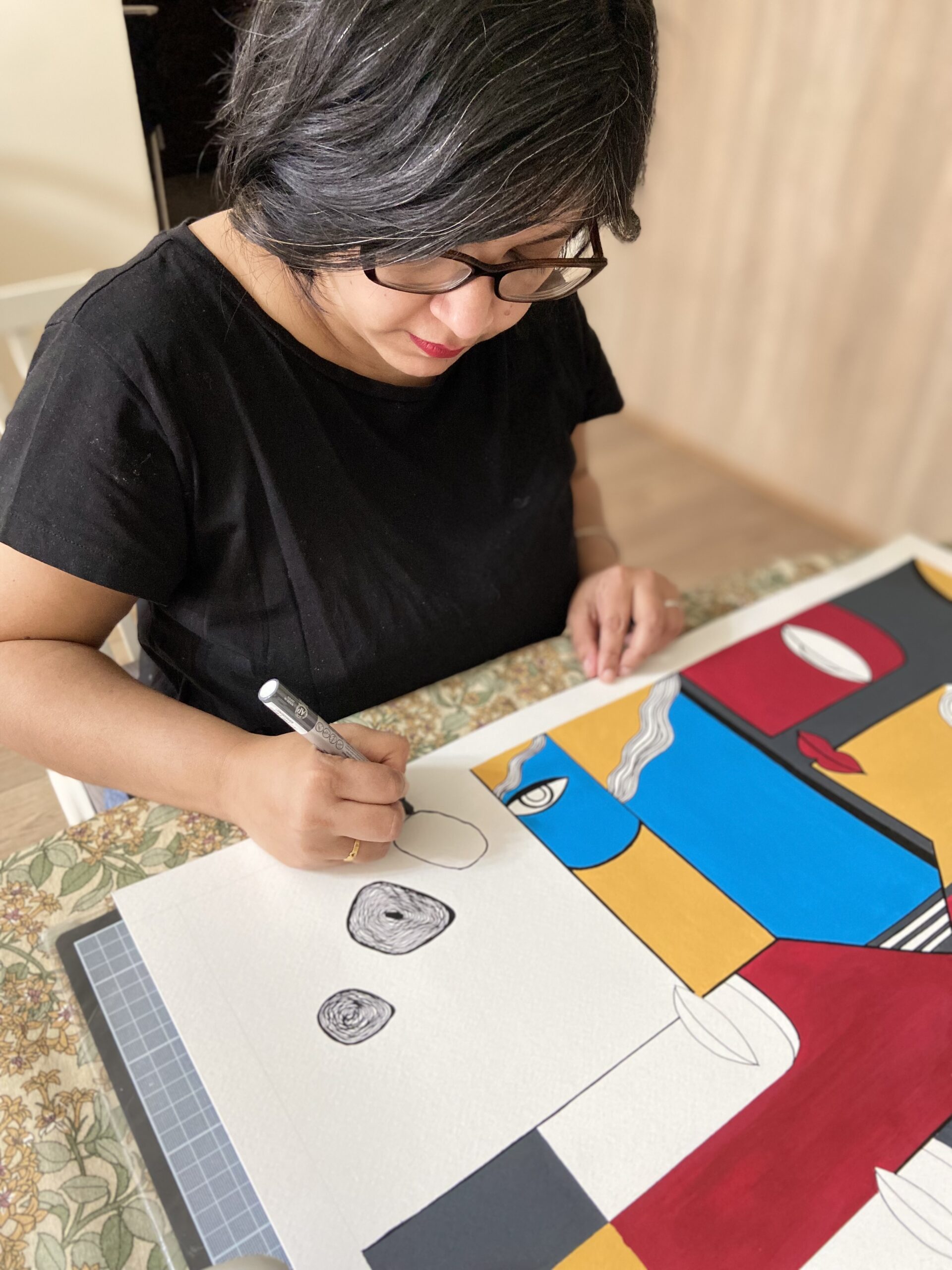 Today, from my home studio in Krakow, I continue this journey by creating original artworks, art prints, and thoughtfully designed home décor items and accessories that bridge my Indian roots with global stories. Every creation is carefully handcrafted, packed with care for its journey, and grounded in my commitment to sustainability through the use of recyclable materials. Whether I am working on a custom commission, a collaboration, or a ready-to-hang original, my purpose remains constant: to bring cultural depth, emotional connection, and timeless beauty into everyday spaces.