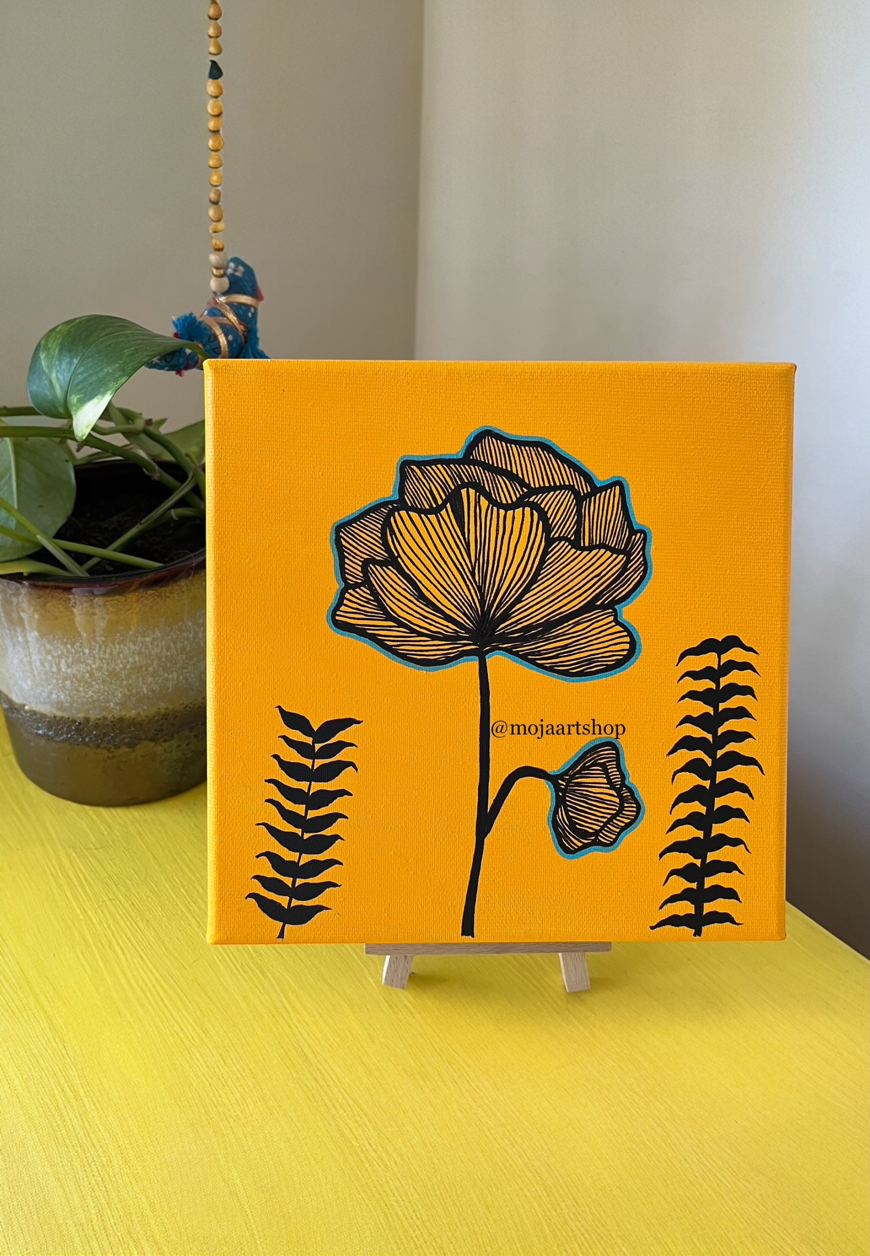 A vibrant Boho-style painting featuring bold blue and sunny yellow tones that bring warmth and energy to any space. Loose, expressive shapes create a relaxed, free-spirited feel, while the bright palette adds a joyful, uplifting presence. Perfect for adding a pop of color and an artistic touch to your home.